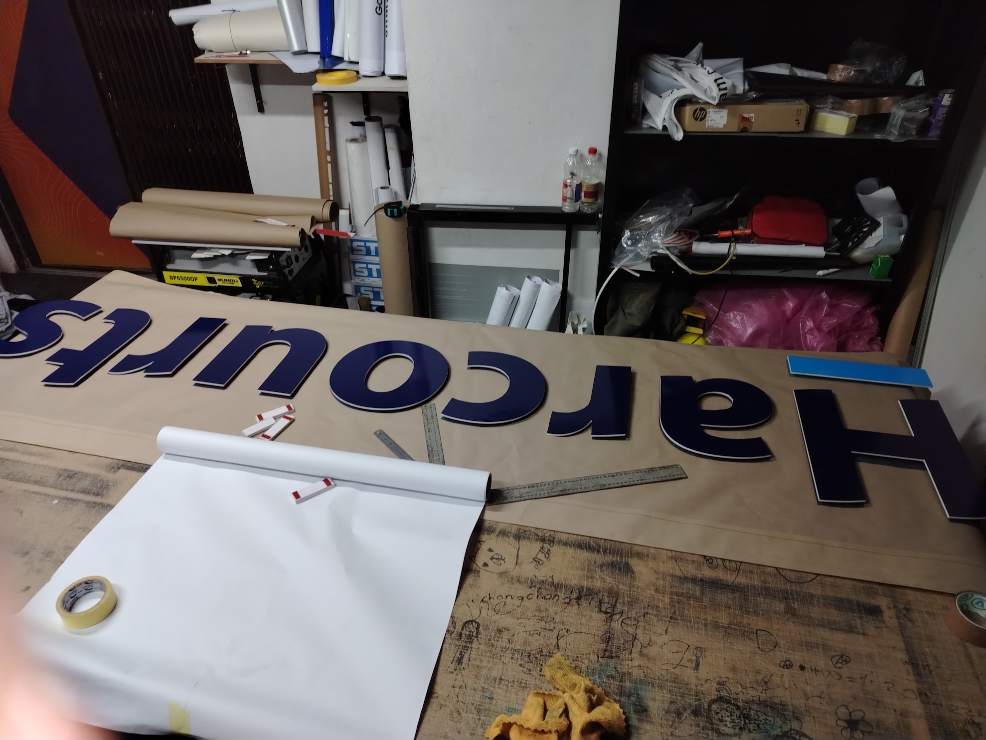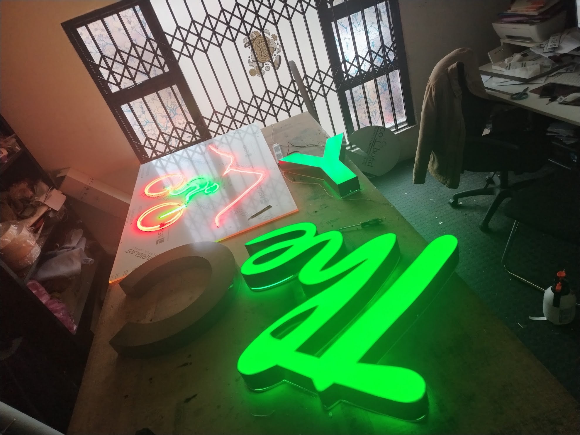 In-house CNC cutting, 3D lettering, steel and aluminum welding, and wooden frame construction for custom-fabricated signage solutions.